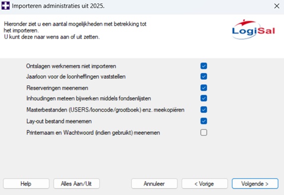 Als het vinkje bij deze optie aanstaat, zal LogiSal op basis van de gegevens uit de te importeren administratie het jaarloon voor de loonheffingen vaststellen. Dit jaarloon wordt gebruikt bij de bepaling van het percentage bijzondere beloning.